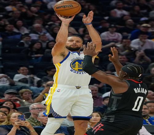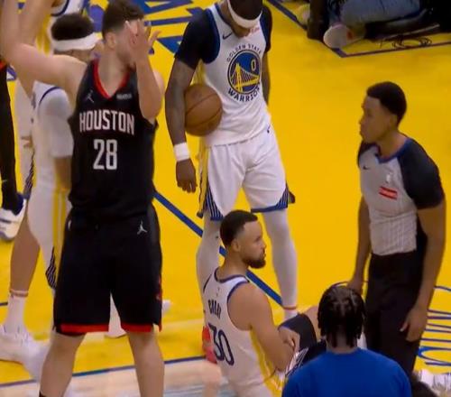 库里此役在首节还剩4分54秒登场,他足足休息了65天(27场比赛),他的跑步膝终于痊愈了,赛前热身还完成了暴扣,火箭还是先用阿门去盯库里。