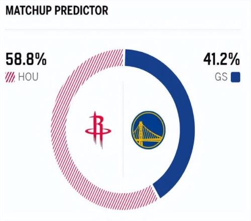 赛前,美媒ESPN对本场比赛进行了胜率预测,火箭队胜率58.8% ,而勇士胜率则为41.2% ,劣势明显 。