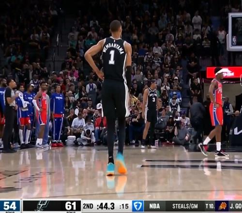 半场战报马刺领先76人7分文班17+5恩比德20+6马克西4中0