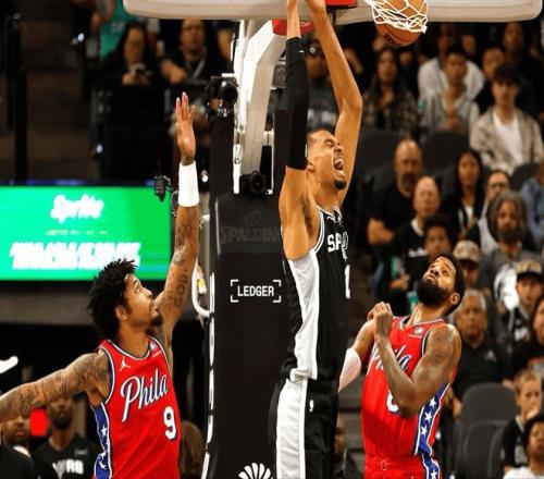 所以文班亚马在恩比德头上肆意妄为,更别提恩比德这家伙是一位有着美国、法国和喀麦隆三重国际的球员。恩比德的打法,算是NBA这几年最吃香的,会造犯规,能投三分的空间型内线。但看到文班亚马,才知道什么是划时代的天赋球星。进攻战术有问题,把球往天上抛就行;防守端有漏洞,文班亚马往内线一站就是防守体系。不过,在一次反击和乔治争抢球权的过程中,两人发生了碰撞,文班亚马遭遇肋部挫伤,很快返回更衣室接受进一步检查。好在不久后再次返场,不过在出场时间来到16分钟后,还是因为不舒服被换下场,马刺很快宣布文班亚马退出比赛。