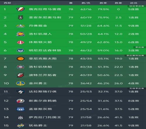 随着掘金9连胜,马刺115102,西部最新排名出炉!湖人下滑第4