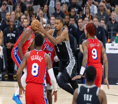 文班亚马17+5伤退,马刺横扫76人!恩比德34+12+4帽,卡斯尔3双创纪录!