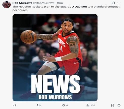 随后火箭记者大卫-韦纳转推写道:我坚信本周火箭队就会将戴维森的双向合同转为标准合同。