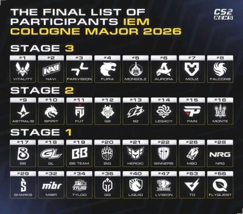按规则今日就是Major邀请截止日期,至此参加EM科隆Major的32支参赛队伍现已全部确定: