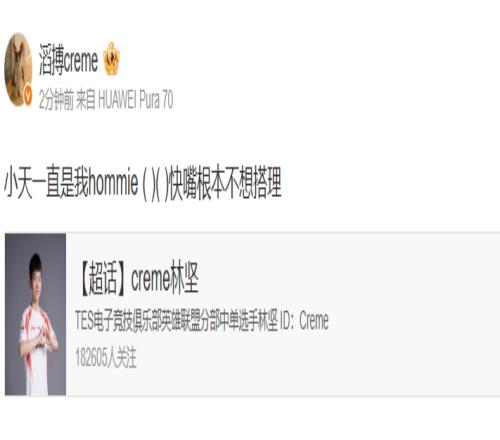 体育播报4月5日宣 今日LPL常规赛TES爆料横扫AL,赛后TES中单Creme更博粉碎赛前自己与Tian关系不和的流言:小天一直是我hommie ( )( )快嘴根本不想搭理